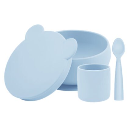 Набір для годування силіконовий (миска з кришкою, чашка, ложка) MinikOiOi BLW Set I – Mineral Blue