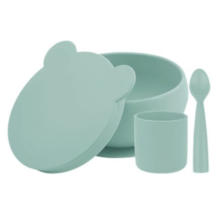 1380 грнНабір для годування силіконовий (миска з кришкою, чашка, ложка) MinikOiOi BLW Set I – River Green