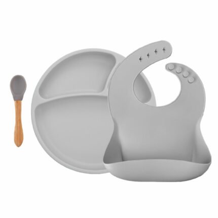 1380 грнНабір для годування силіконовий (нагрудник, секційна тарілка, ложка) MinikOiOi BLW SetII-Powder Grey