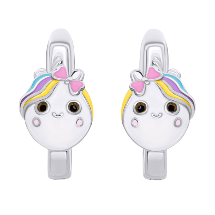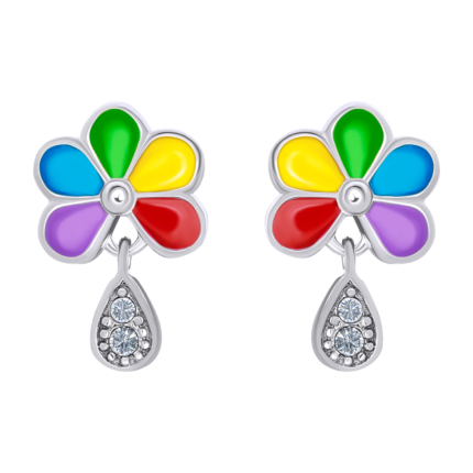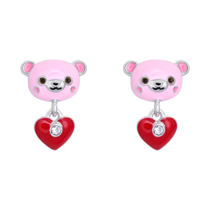 1799 грнСережки-пусети Ведмежатко з серцем із рожевою, червоною емаллю та фіанітами