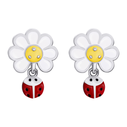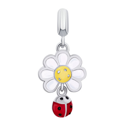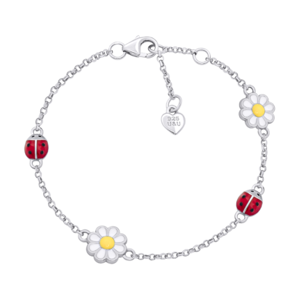 Браслет на ланцюжку Ромашка з сонечком із білою, жовтою та червоною емаллю