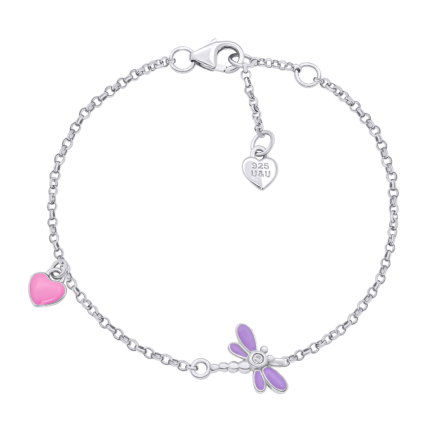 2299 грнБраслет плетений Ведмежатко з серцем із рожевою, червоною емаллю та фіанітом