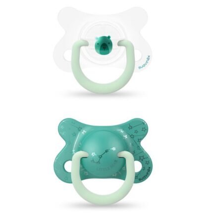 Пустушка анатомічна (набір: 2 шт), 0-6 місяців, нічна/зелений ведмедик (8426420070362)