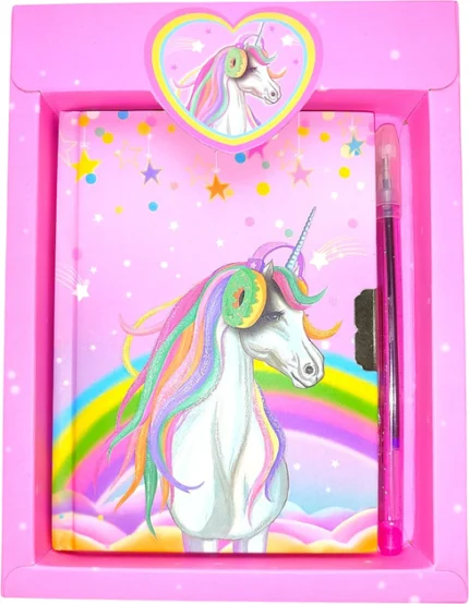 Блокнот дитячий на замочку в подар.коробочці з ручкою 150x110mm, 70g, 56 л, Єдиноріг