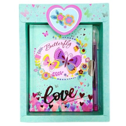 Блокнот дитячий на замочку в подар.коробочці з ручкою 150x110mm, 70g, 56 л, Метелик