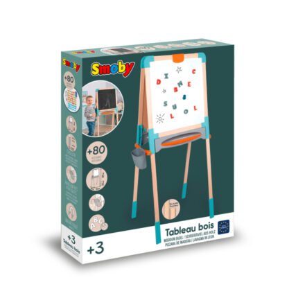 Двосторонній дерев’яний мольберт *Веселе навчання*, 80 аксес., 50 х 55 х 120 см, 3+