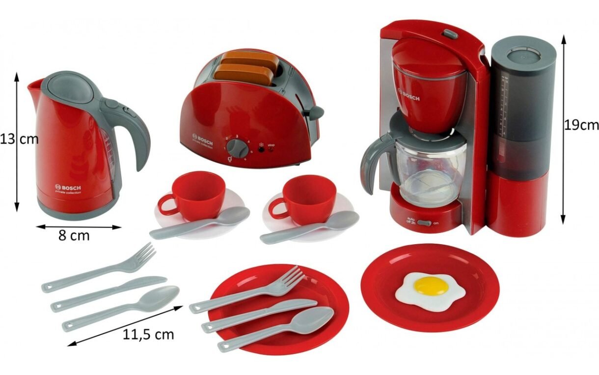 Цей ігровий набір — це ідеальний вибір для маленьких кулінарів, які хочуть приготувати сніданок для своїх улюблених ляльок або друзів. Він є точною копією справжньої техніки Bosch, що дозволяє дитині відчути себе справжнім кухарем.