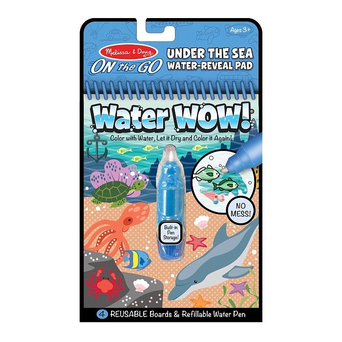 Технологія Water Wow!: Набір включає багаторазові сторінки та багаторазову ручку-маркер, яка заповнюється звичайною водою. Коли маркер проводить по сторінці, проявляються яскраві кольори та деталі підводного світу.