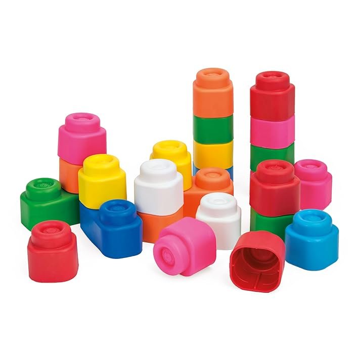 - Прозорий мішок містить 24 різнокольорові кубики Baby Clemmy, призначені для безпечної гри дітей.