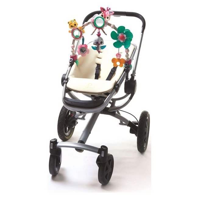 - Універсальність: Дуга має гнучку основу та зручні кріплення, що дозволяє легко прикріпити її до більшості дитячих візків, автокрісел та шезлонгів.