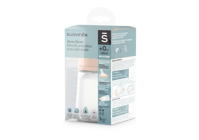 Головна особливість пляшечки ZERO.ZERO – це її запатентований антиколіковий мішок всередині. Цей мішок стискається у міру того, як малюк висмоктує рідину, запобігаючи утворенню повітряних бульбашок та, як наслідок, заковтуванню повітря. Це значно зменшує ймовірність виникнення кольок, газів та зригувань, забезпечуючи спокійне годування.