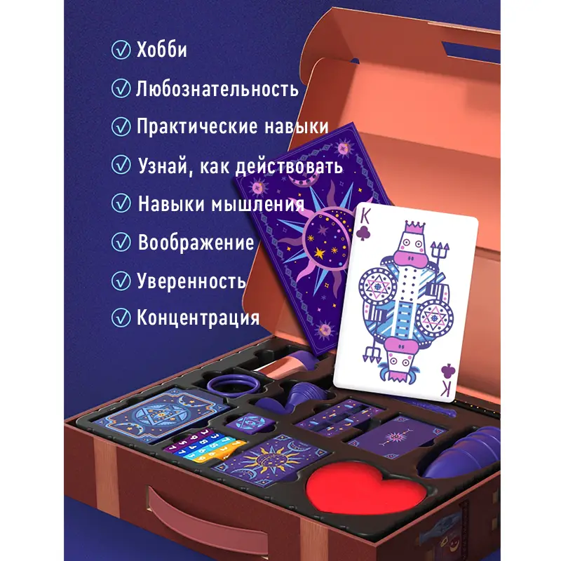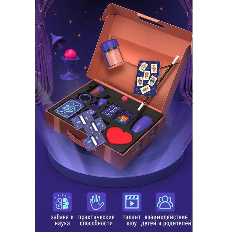 Набір розроблений професійним ілюзіоністом з 20-річним стажем роботи, тому в ньому зібрані найвдаліші і найпростіші у виконанні трюки, які будуть під силу дітям віком від 6 років.