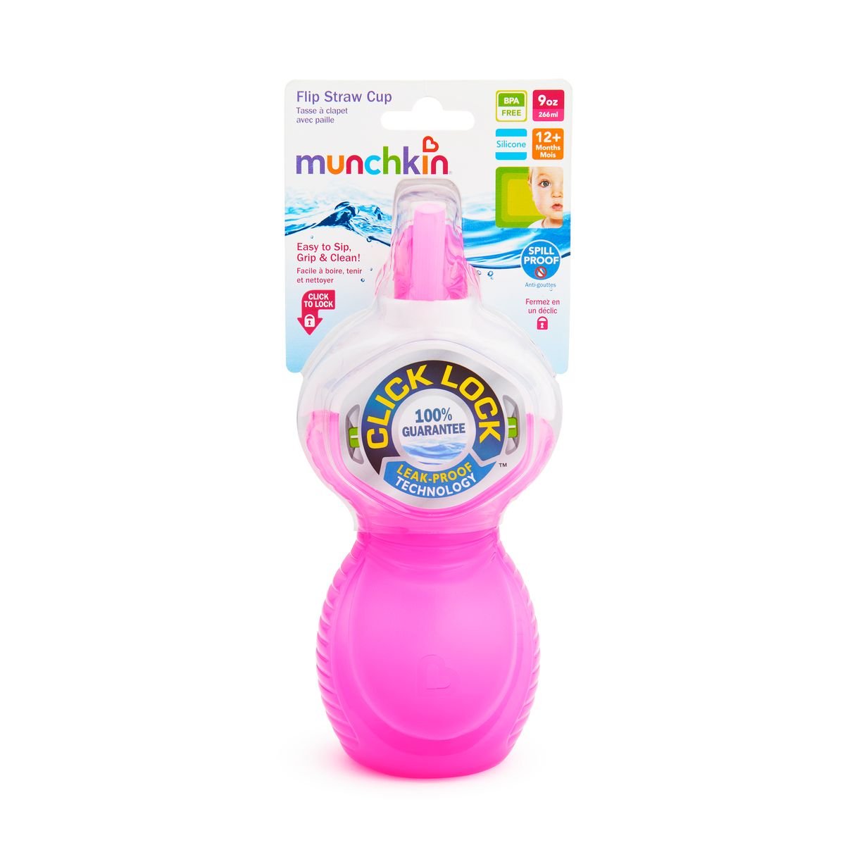 Пляшка непроливна *Flip Straw* (Click Lock) 266мл. кол. рожевий