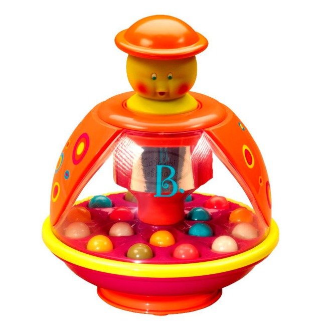 - Принцип дії: Щоб запустити дзиґу, дитині потрібно натиснути на кнопку або важіль зверху. Це змусить мандаринку обертатися, створюючи візуальне шоу з рухомими елементами всередині.