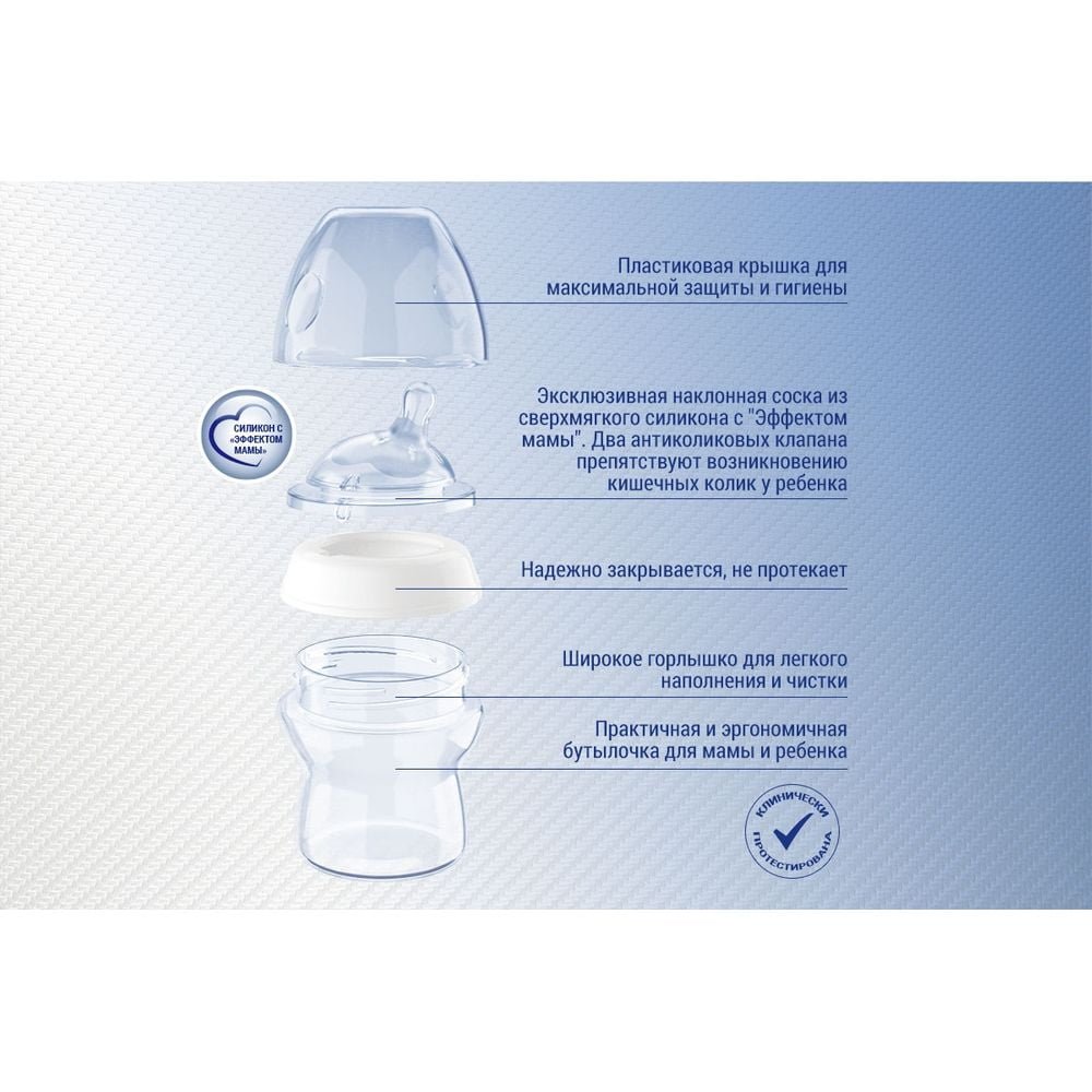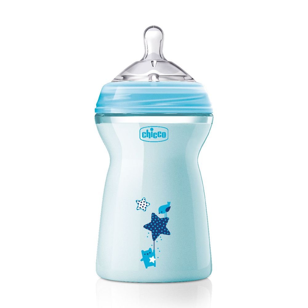 Пляшка пластикова Natural Feeling 330мл. соска силіконова від 6 місяців швидкий потік (блакитна)