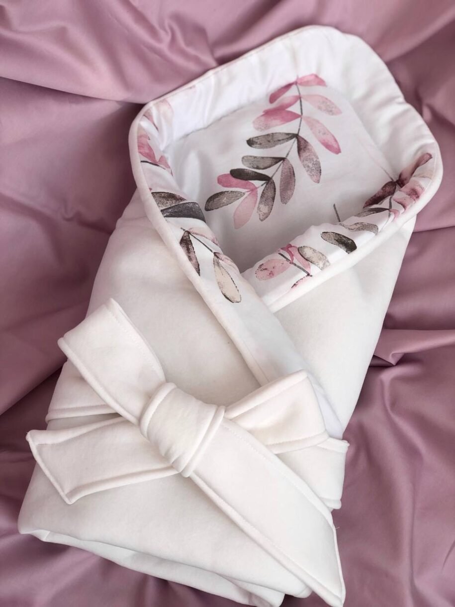 Будьте першим, хто залишив відгук на “Конверт для новонароджених Екрю і рожеві листочки”