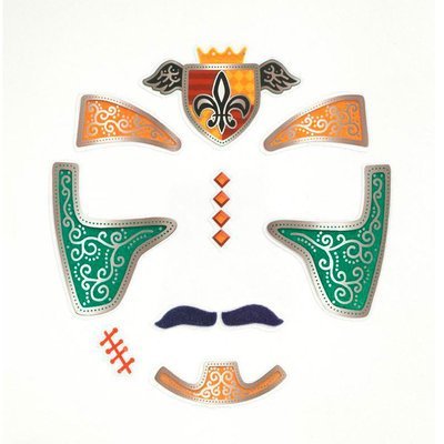 - Призначення: Набір містить наклейки, спеціально розроблені для нанесення на обличчя. Вони дозволяють дитині швидко і легко створити образ короля, не використовуючи фарби для аквагриму.