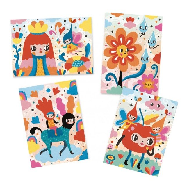 - Чарівний дизайн. Набір присвячений темі «Чудово мило», і картини в ньому виконані в фірмовому стилі DJECO — вони ніжні, милі та казкові.