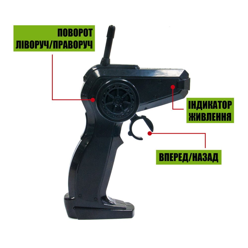 • Дистанційне керування. Керування здійснюється за допомогою пульта, що дозволяє контролювати рух автомобіля на відстані, виконуючи маневри та долаючи перешкоди.