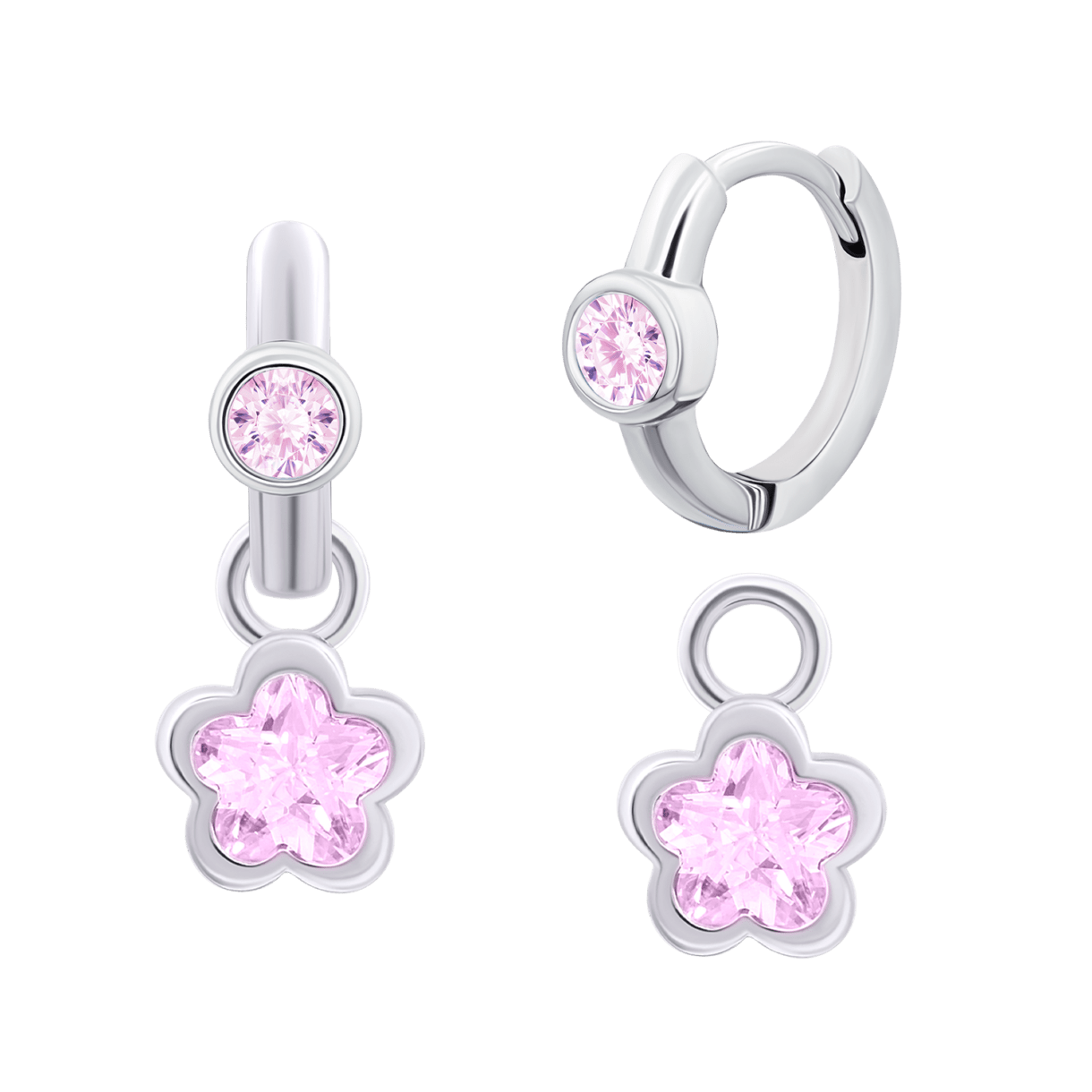 Сережки з підвісами Квіточка блискуча з рожевими фіанітами