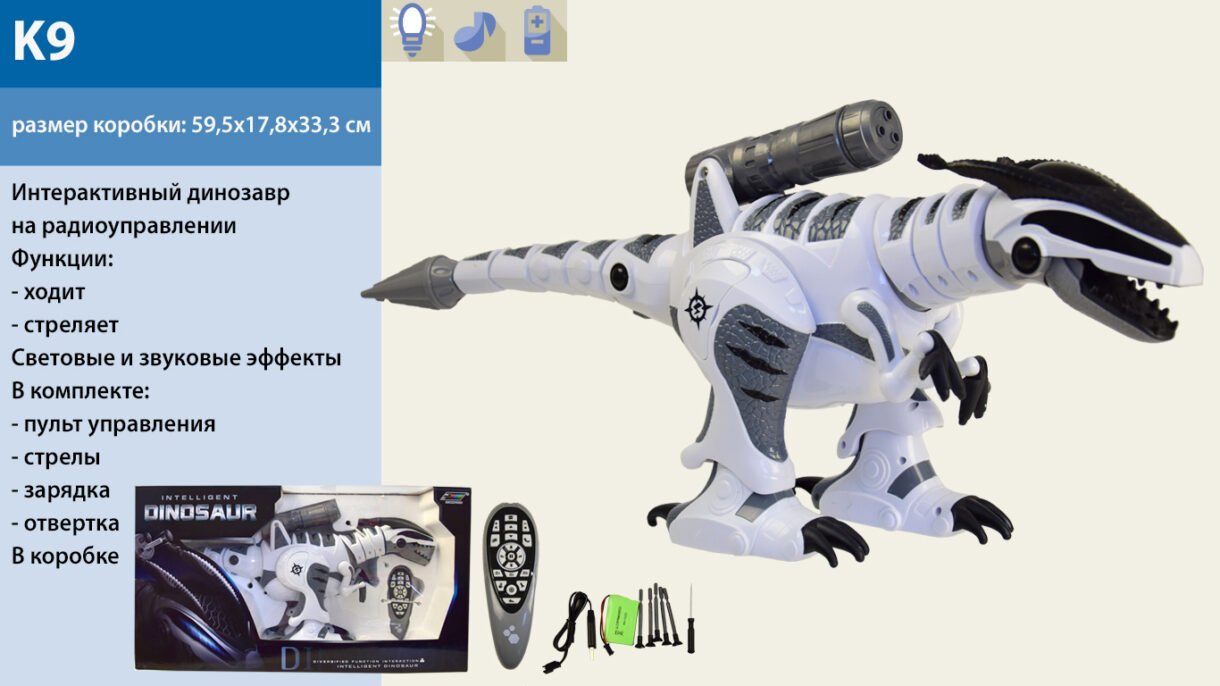 Іграшка дінозавр K9 (6 шт) на р/к, ходить, стріляє, світов.і звуков.ефекти, у кор.59,5*17,8*33,3см