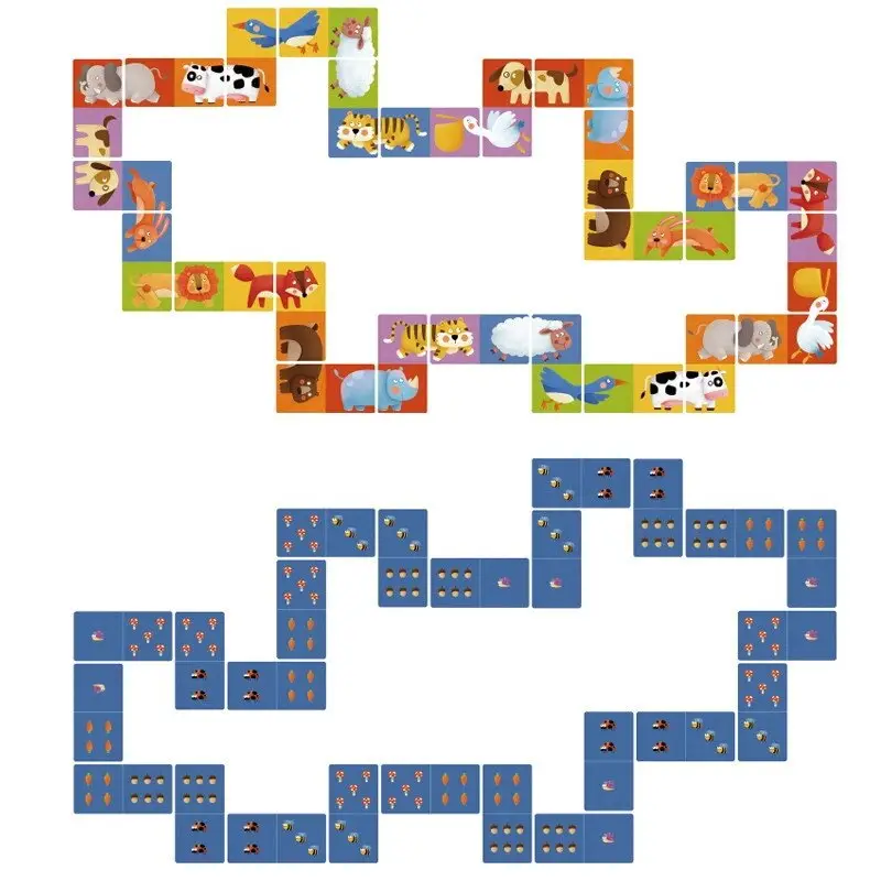 Настільна Гра Mideer Тварини Доміно містить двосторонні картки. На одній стороні зображений автотранспорт – передню частину автомобіля треба поєднати із задньою. А друга сторона карток виконана у вигляді класичного доміно.