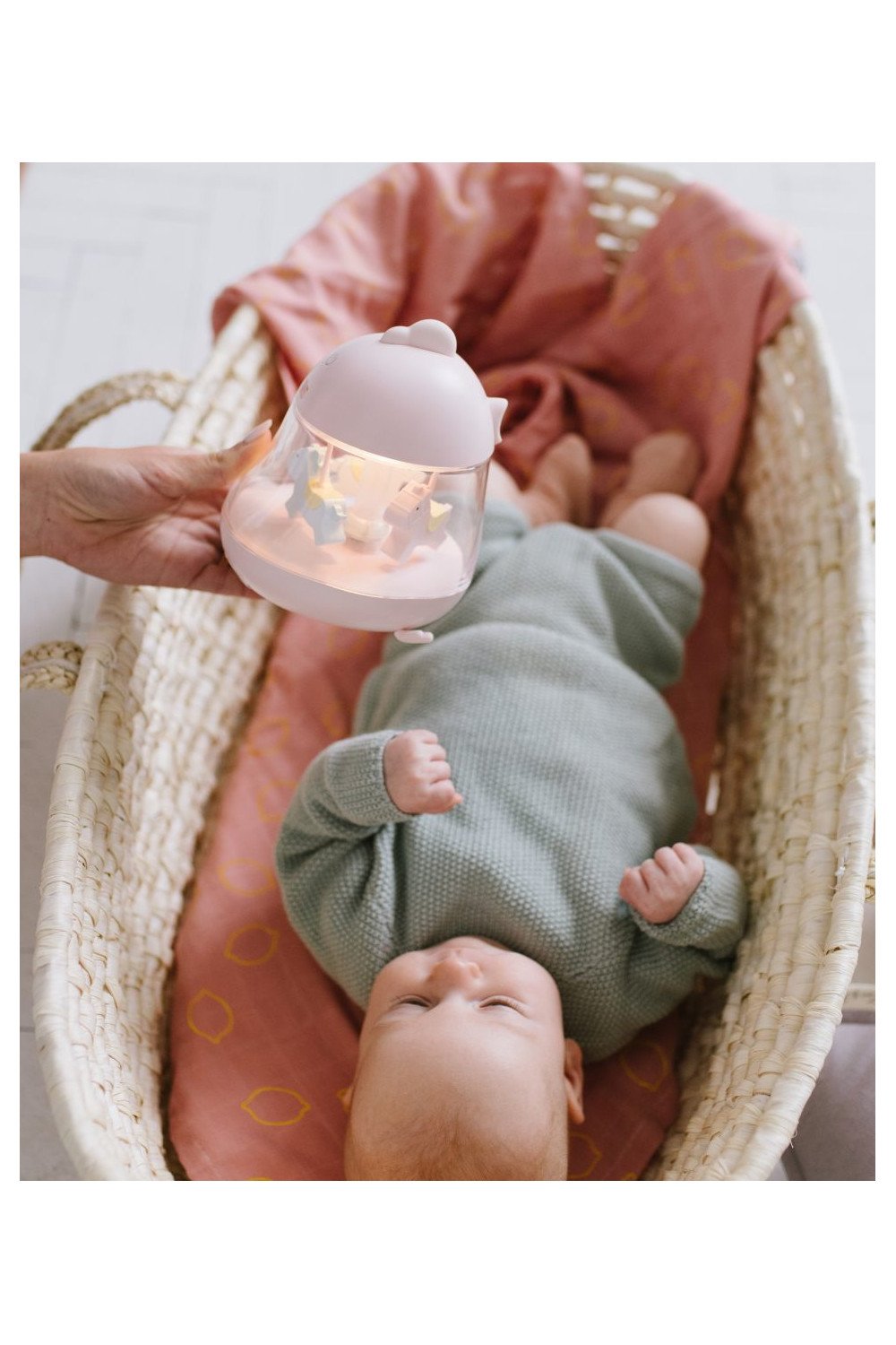 Увімкніть лампу, натиснувши на кнопку, щоб активувати м’яке світло та мелодії. Дитина може насолоджуватися звуками, спостерігаючи за світлом, що створює казкову атмосферу, що сприяє сну.