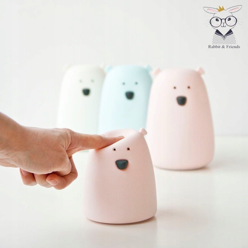 Велика силіконова лампа Ведмедик з пультом (біла)