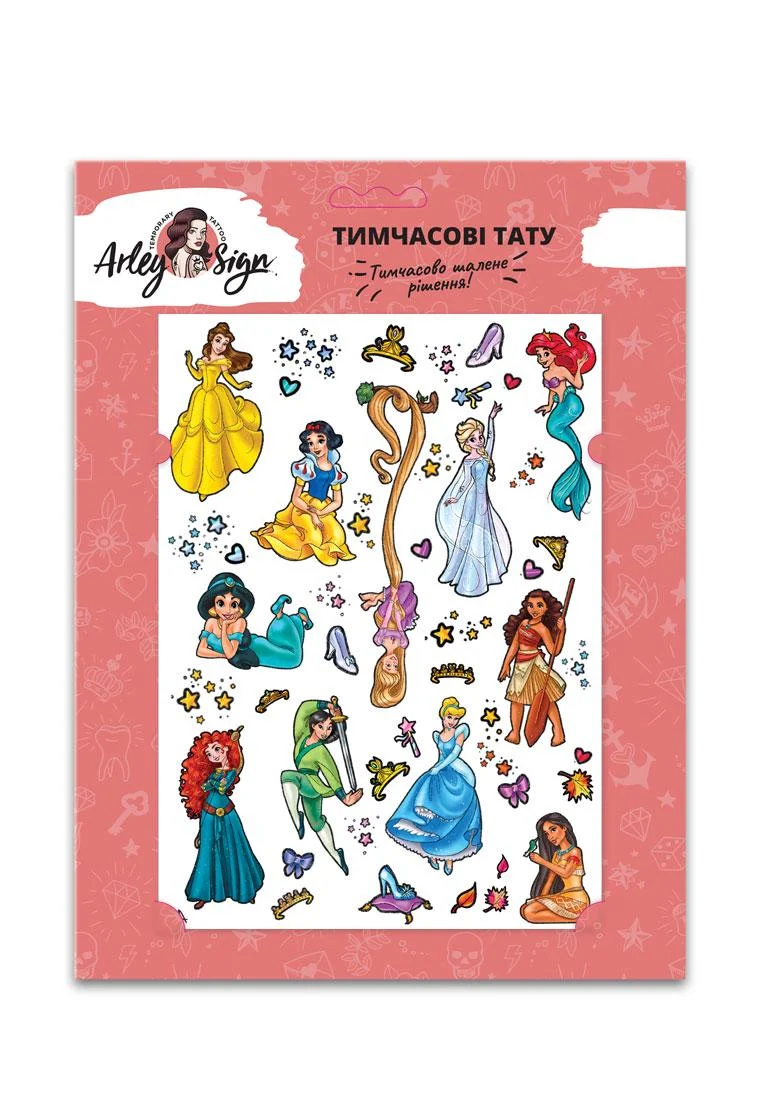 • Набір татуювань присвячений улюбленим принцесам з казок та мультфільмів. Це можуть бути класичні персонажі (Попелюшка, Білосніжка, Аріель, Белль, Жасмин тощо) або сучасніші героїні.