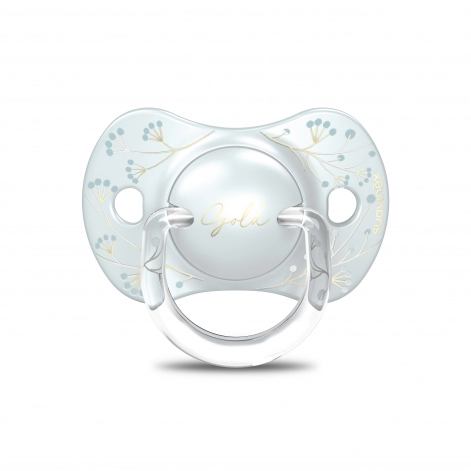 Фізіологічні пустушки серії SX Pro колекції Gold Edition.SX PRO – це інноваційне рішення для правильного розвитку ротової порожнини дитини з перших днів життя. При використанні пустушки її форма дозволяє утримувати язик в положенні, яке відповідає природному положенню під час грудного вигодовування.Для дітей віком від народження до 6 місяців.Колір – блакитний з золотим візерунком.Барвники, що використовуються для оздоблення продукції Suavinex, натуральні та нетоксичні.Фізіологічна форма – пласка і симетрична, залишає достатньо місця для язика, щоб прийняти природне положення.Сплюснута шийка соски, дозволяє ротику майже повністю закриватися та краще розподіляти тиск між яснами/зубами.