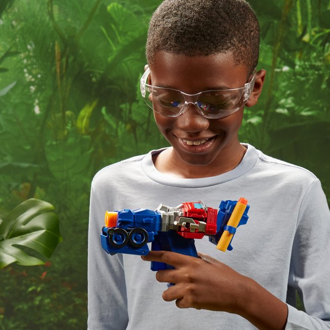 - Перетворюється з трансформатора в бластер, який працює на Nerf.