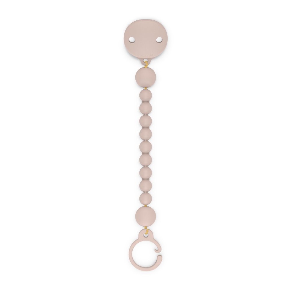 Кліпса виготовлена з безпечного медичного силікону у вигляді ланцюжка зі з’єднаними між собою намистинами.Вона легко кріпиться до одягу дитини, не даючи пустушці впасти на брудну поверхню або загубитися.М’який і гнучкий силікон забезпечує дитині сенсорний досвід, підтримуючи її розвиток з перших хвилин життя.Ви можете вільно комбінувати кліпси з пустушками та пляшечками з колекції Colour Essence, чи іншими колекціями.Вся продукція не містить бісфенолу.Продукт упакований у картонну коробку, що на 100% складається з переробленого картону.