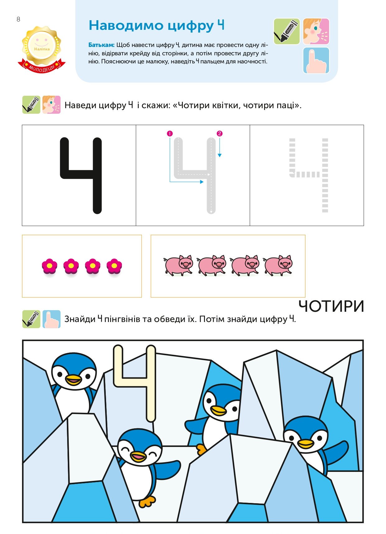 Ця книга ідеально підходить для дітей віком від 3 до 5 років, які починають вивчати числа та готові до розвитку своїх математичних здібностей через ігровий процес.