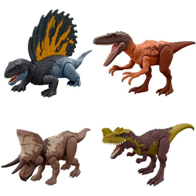 Приготуйтеся до запеклих битв у самому центрі дикої природи! Серія фігурок «Руйнівна атака» (Strike Attack) створена за мотивами фільму «Світ Юрського періоду» та представляє різноманітних динозаврів, кожен з яких має свій фірмовий бойовий прийом. Незалежно від того, чи це потужний удар хвостом, чи блискавичний випад головою, ці іграшки роблять кожну сутичку неймовірно видовищною. Завдяки асортименту ви можете обрати саме того хижака або травоїдного, який найкраще підходить для вашої стратегії виживання.