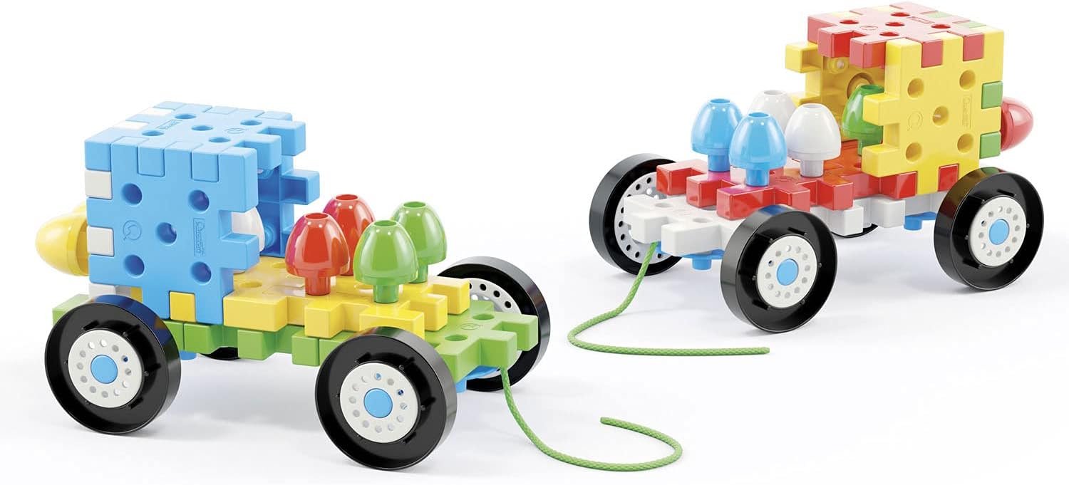 Конструктор “Jumbo” з 62 деталей дозволяє дітям зануритися у світ творчості та безмежних веселощів. З його допомогою маленькі будівельники можуть зібрати власну машинку та прикрасити її кілочками.