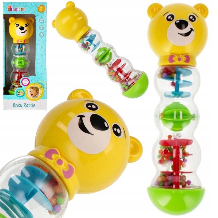 Розвиток дрібної моторики та хапального рефлексу Зручна форма корпусу ведмедика дозволяє маленьким ручкам легко захоплювати та утримувати іграшку. Постійні маніпуляції з брязкальцем зміцнюють м’язи кисті та покращують координацію рухів.