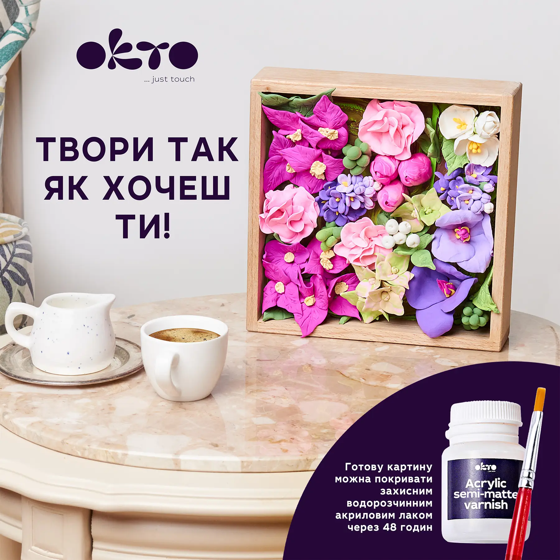 Обираєш оригінальний подарунок для когось чи час для себе? В цьому наборі на Тебе чекає приємний і захопливий процес моделювання квітів, цих дивовижних дарунків природи! Як результат — неповторна інтер’єрна композиція та нові емоції! Just touch…