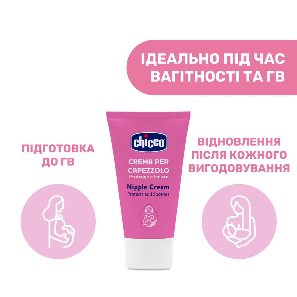 Крем для сосків Chicco – це необхідна та незамінна річ у догляді за шкірою. Зволожує та залишає шкіру еластичною в період вагітності, а під час грудного вигодовування допомагає зняти біль та заспокоїти шкіру навколо сосків.