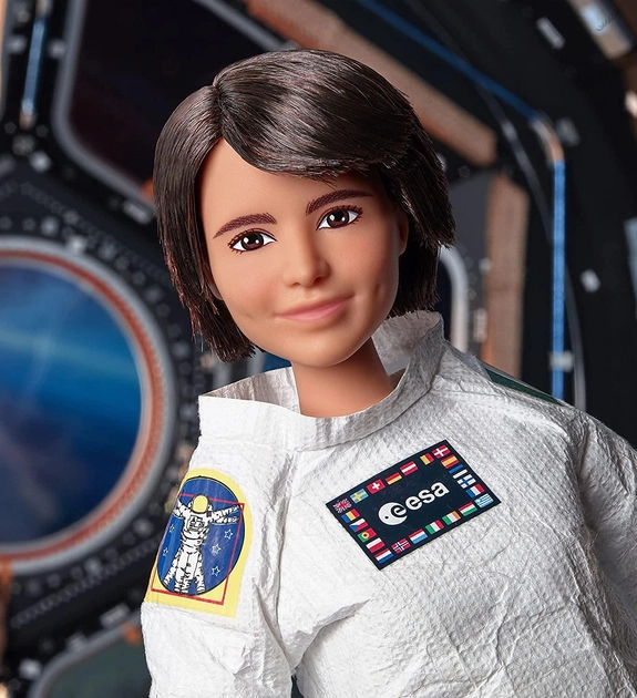 Лялька Барбі астронавта ЄКА Саманти Крістофоретті готова до старту. На ній шолом, космічний костюм та космічні черевики. Cкафандр прикрашений реалістичними деталями, такими як нашивки з логотипом ESA, EVA і італійським прапором.