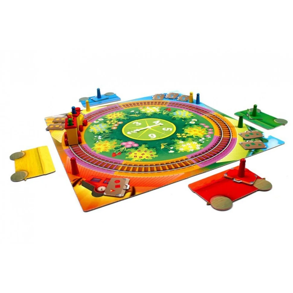 “Мій перший потяг” – це тактична гра, яка зробить проведення часу з друзями набагато веселіше і цікавіше. Гра призначена для компанії від 2 до 4 осіб, які збирають свій багаж, що було переплутано на вокзалі. Гравці ходять по черзі, розробляють власні тактичні ходи і збирають багаж свого кольору.