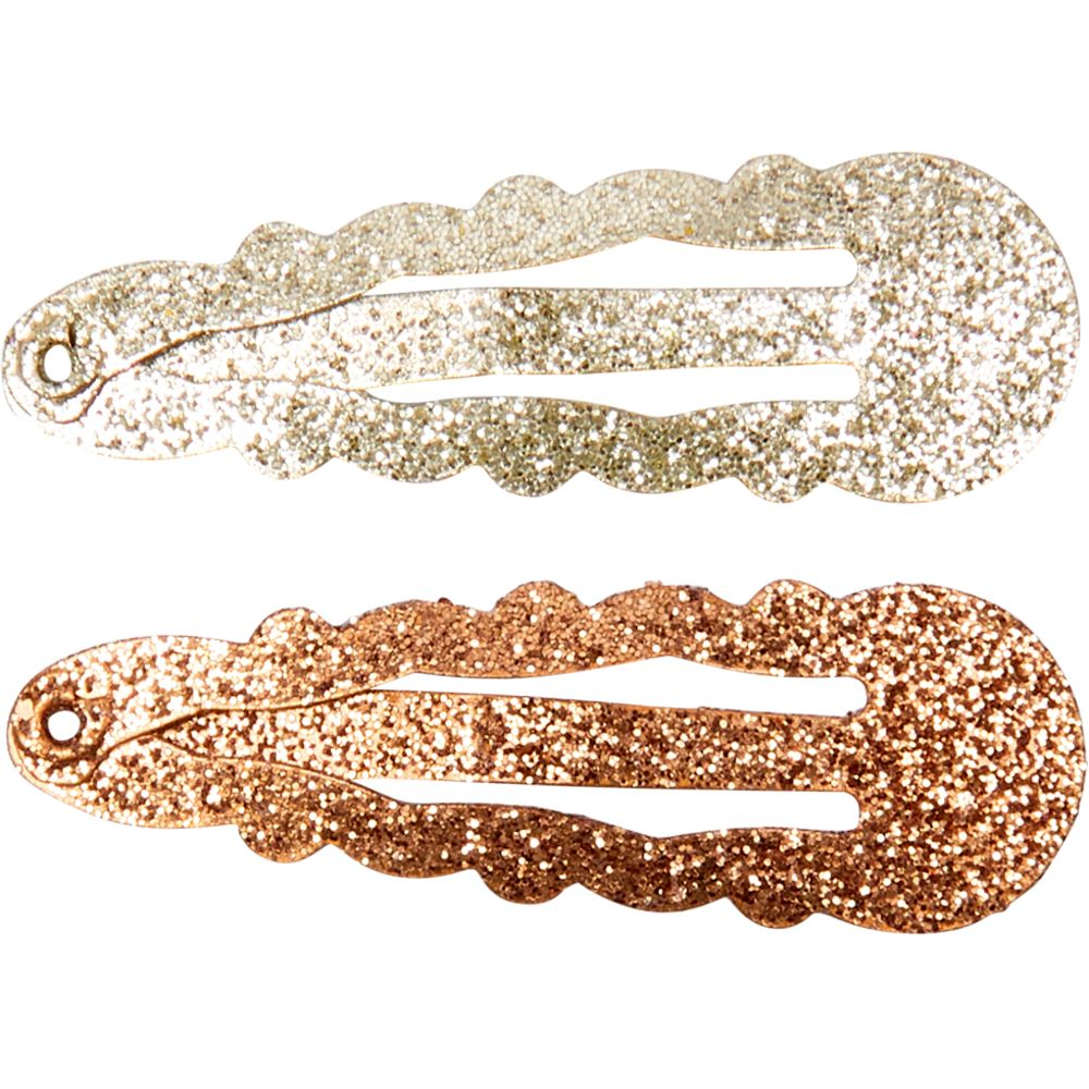 Дизайн: Заколки мають форму зірочок, покритих дрібним золотистим глітером, який гарно переливається на світлі.