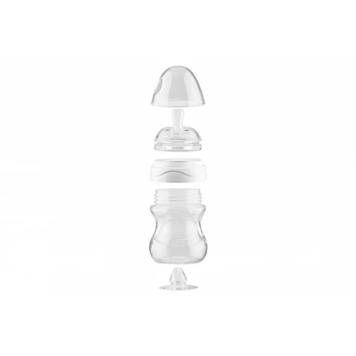 • Продумана антиколькова система: завдяки прорізам в соску й спеціальному клапанові на дні пляшечки, є можливість випустити зайве повітря під час годування дитини, запобігаючи змішуванню повітря з молоком чи сумішшю, і таким чином попереджуючи одну з можливих причин виникнення кольків у немовлят.
