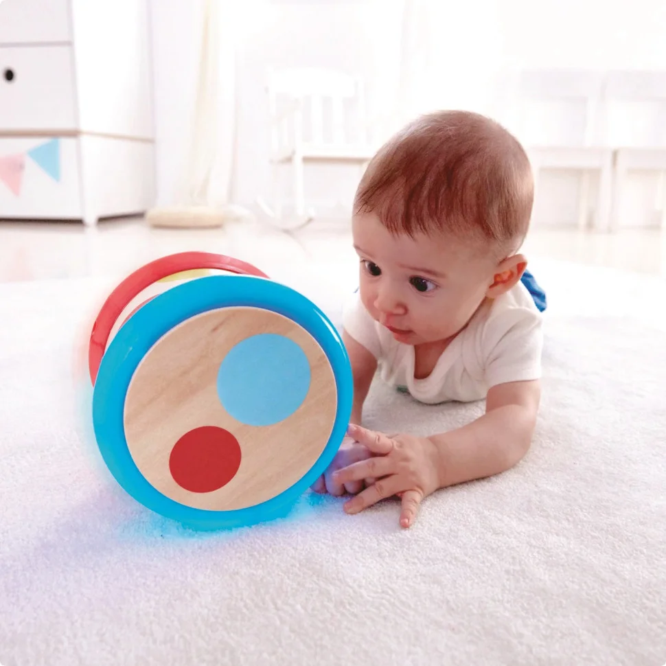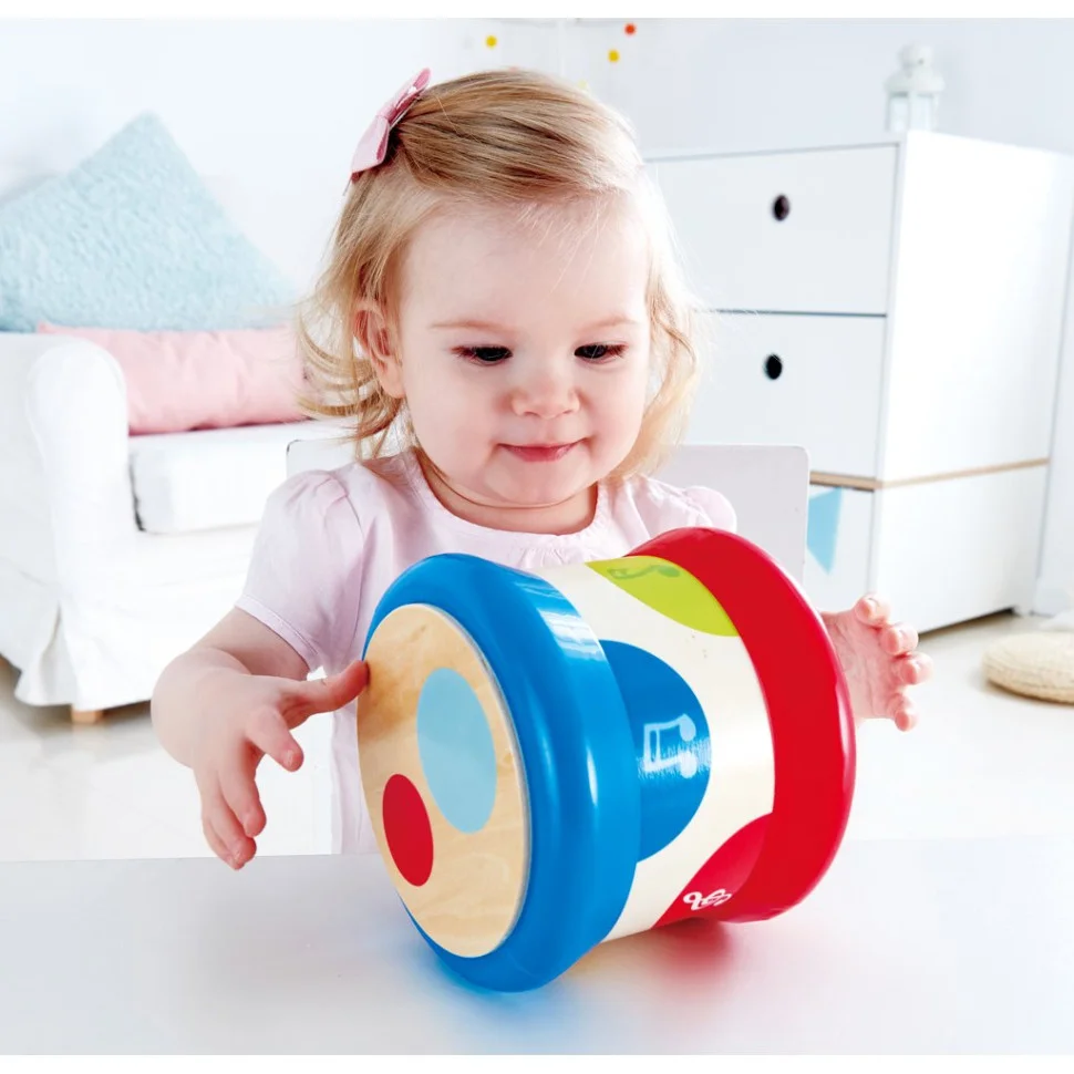Музична іграшка Hape Барабан підходить для дітей від 6 місяців і старше. Вона стимулює дитячий інтерес до музики та ритму, розвиває слухові та моторні навички.