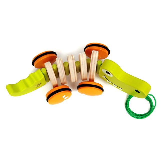 - Дитина може тягнути каталку за мотузочку, спостерігаючи, як крокодил рухається вперед та ковзає за ним.