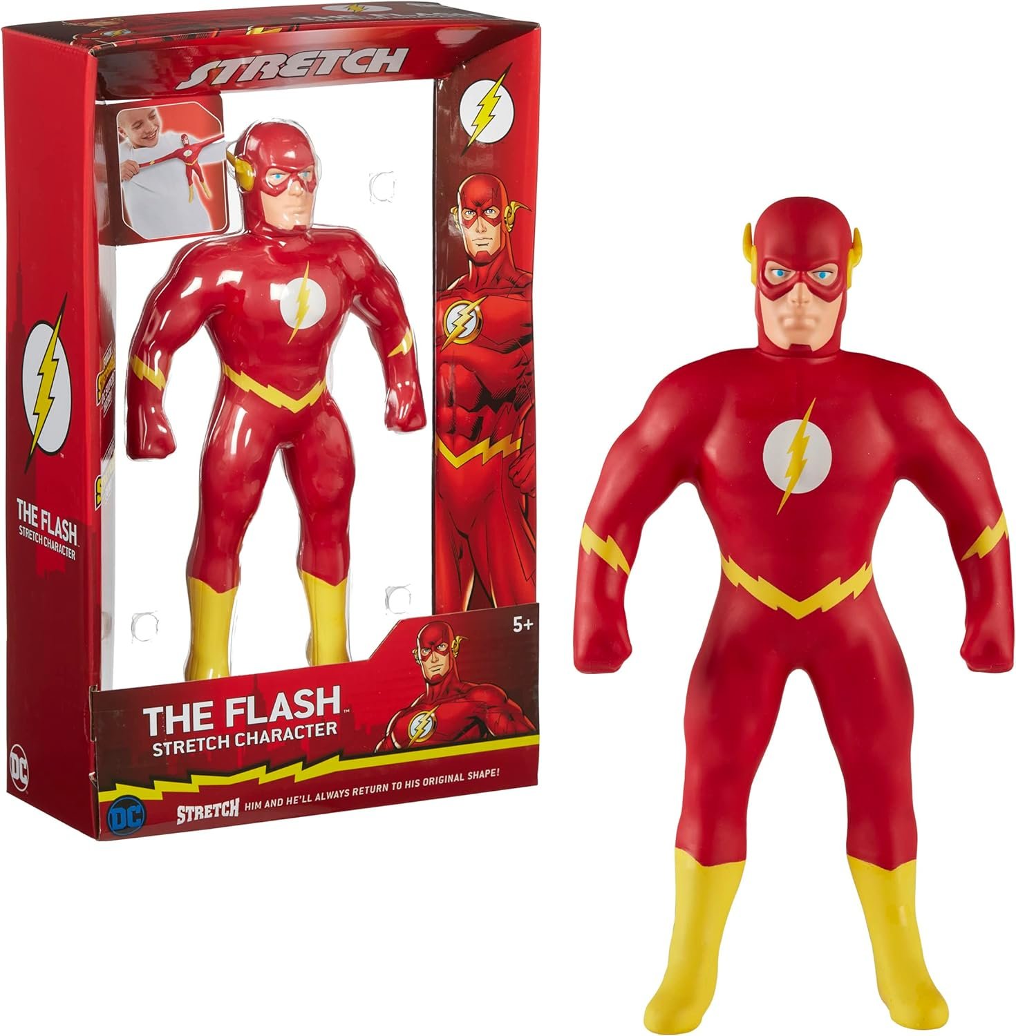 Колекційна фігурка найшвидшої людини у світі Флеша з серії Stretch — це унікальне поєднання супергеройської тематики DC Comics та класичної іграшки-антистресу. Головна особливість цієї моделі полягає у її надзвичайній еластичності. Завдяки спеціальному наповнювачу фігурку можна розтягувати у різні боки збільшуючи її розмір у кілька разів а після того як ви відпустите руки Флеш миттєво повернеться до своєї початкової форми.
