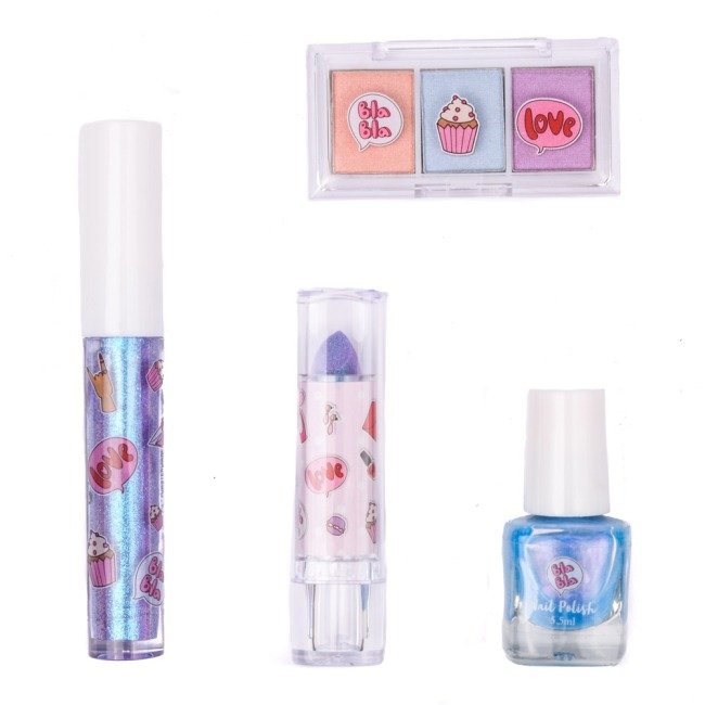 • Повний набір для макіяжу Комплект включає все необхідне для створення цілісного образу: від тіней для повік до блисків для губ та лаків для нігтів