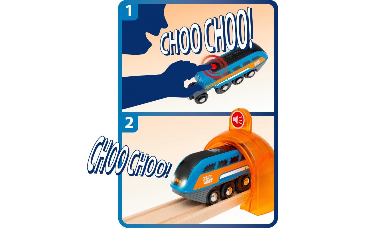 Цей чудовий інтерактивний набір BRIO (33971) дозволить вашій дитині повністю керувати своєю грою! Він має унікальну технологію SmartTech Sound, яка дозволяє поїзду взаємодіяти з навколишнім середовищем, автоматично реагуючи на аксесуари Smart Tech. Він повністю сумісний із усіма дерев’яними коліями залізничних наборів серії BRIO World та інших виробників дитячих залізниць.