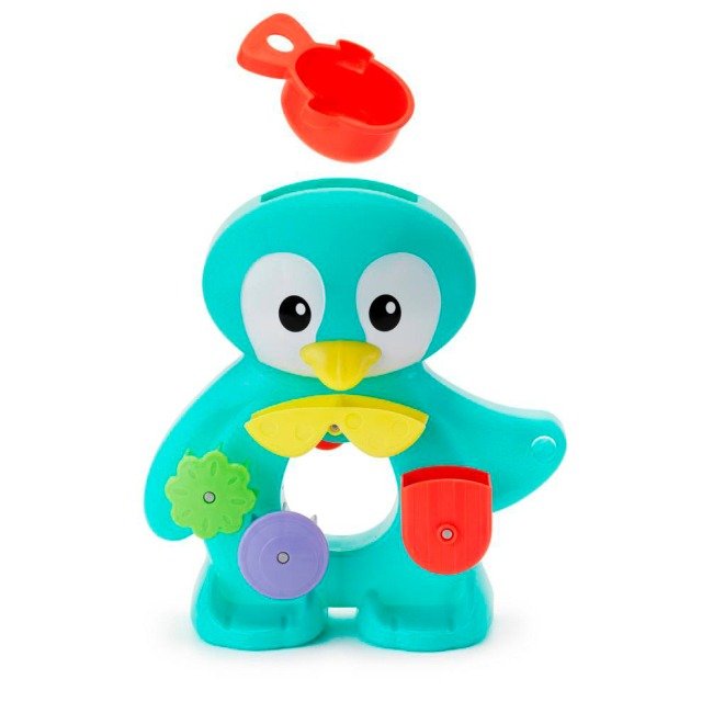 Магія руху води. Коли дитина наливає воду в голову пінгвіна вона починає текти через його дзьоб та активує два яскравих колеса-млини. Спостереження за тим як крутяться лопаті захоплює малюка та дарує море емоцій.