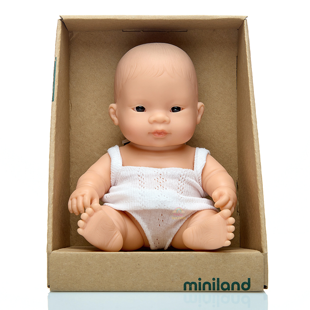 Ключові слова: лялька-пупс, Miniland 21 см, азіатська лялька, дитячі іграшки, рольові ігри, догляд за немовлятами