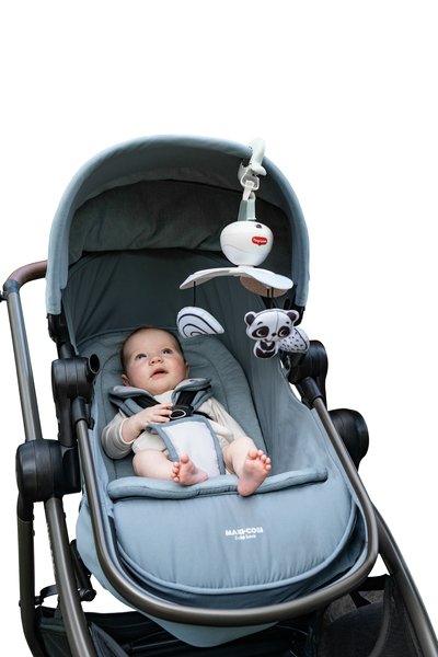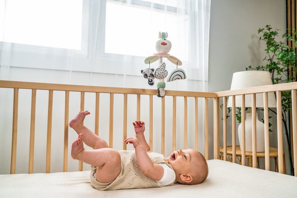 - Зір: Висококонтрастні кольори і обертання іграшок стимулюють розвиток зору.